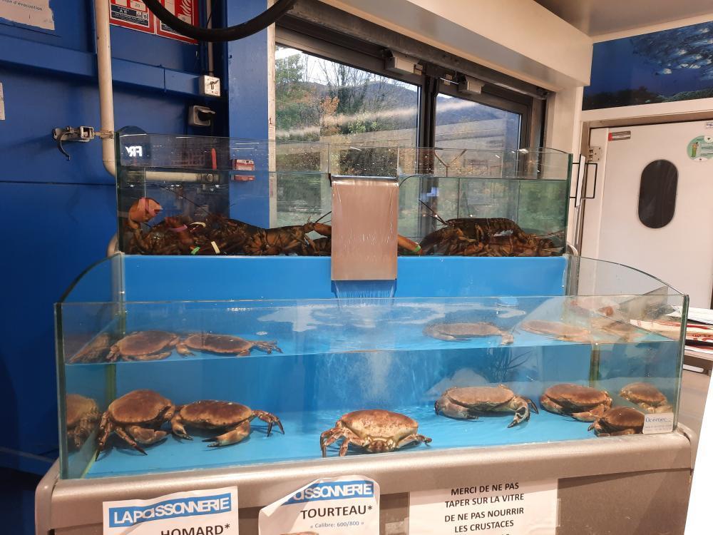 Comme la saison de pêche au Canada et aux États-Unis a lieu d’avril à juin, les homards vont se retrouver stockés dans d’immenses halls ou des parcs à marée, parfois pendant plusieurs mois jusqu’à leur exportation en France pour la période de fêtes.